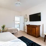 Koupelna má prostornou sprchu a samostatnou toaletu, zatímco pokoj má přístroj na přípravu kávy a čaje, televizi.
